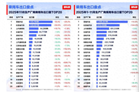 据易车数据显示,2025年11月,比亚迪乘用车出口量达到12.8万台,同比增长313.4%;今年1-11月累计出口87.8万台,同比增长144%,较2024全年总出口量已实现翻倍式增长,比亚迪成为中国出口增速最快的车企之一。